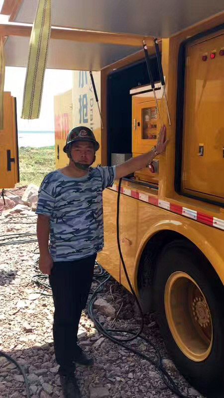 手摸着我们亚太自己生产的防洪抢险泵车,心里踏实!只是,戴了帽子就不帅了吧!