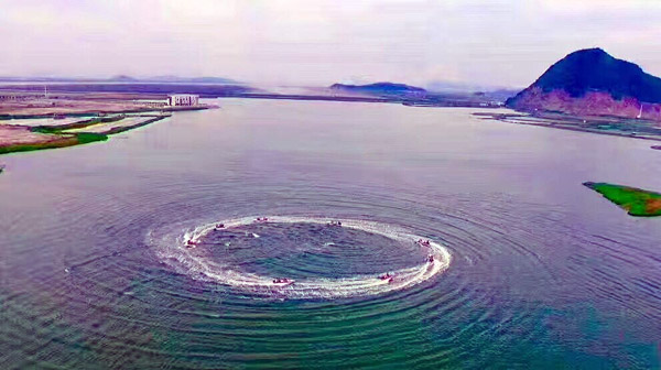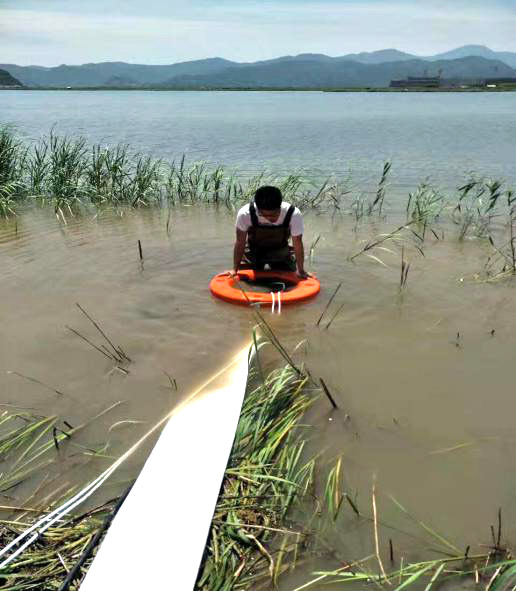 与美景交相辉映的,是漂浮在水面的那一抹抹橙色!对,与之相连的是就是我们的防洪抢险泵!